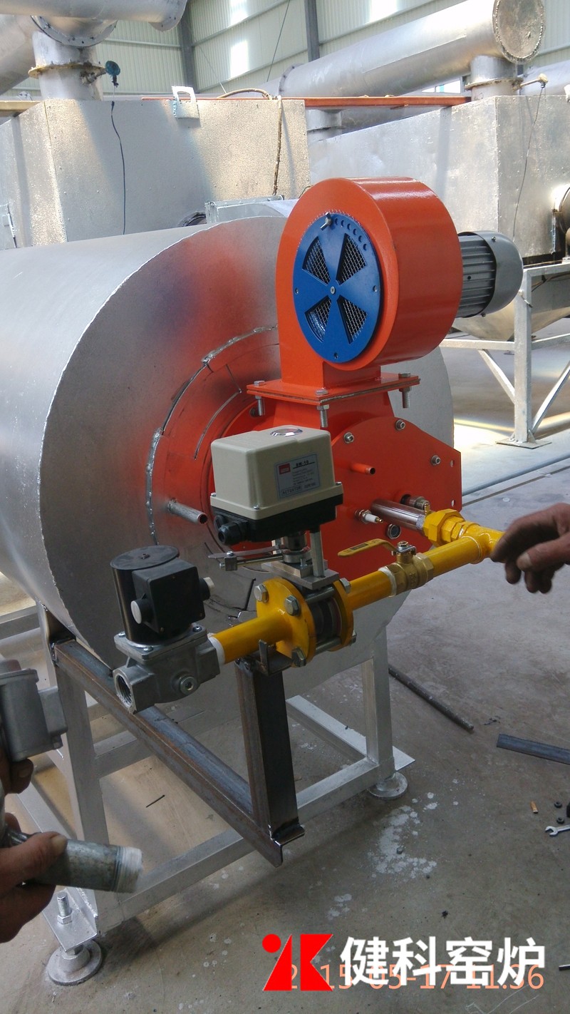 需要加熱的冷空氣通過選配的鼓風機強製送入熱風爐加熱,溫度升至設定溫度後從(cong) 熱風出口送出,進入後續幹燥設備。