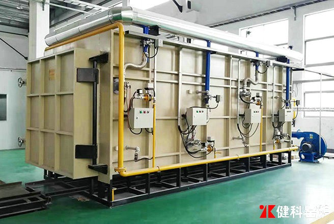 由於窯門經常移動,所以窯門的砌築為兩層,內層為高強度隔熱磚,外層為隔熱層,采用耐火纖維氈貼於窯門金屬殼上。燒嘴安裝在窯牆上,視窯的高度設一排或兩排。以窯車台麵為窯底並和窯頂、窯牆構成窯的燒成空間,窯車襯磚中 心留設主煙道,與地下煙道相接。窯的一端(或兩端)設有窯門,窯門可單獨設置也可砌築在窯車端部。窯車兩側裙板插入窯牆砂封槽內,窯車與窯車之間,窯車與端牆、窯門之間設有曲封槽,耐火纖維擠緊,起密封作用。在窯牆砂封槽下部留有許多通風孔,有利於窯車底部散熱,延長了窯車的使用壽命。